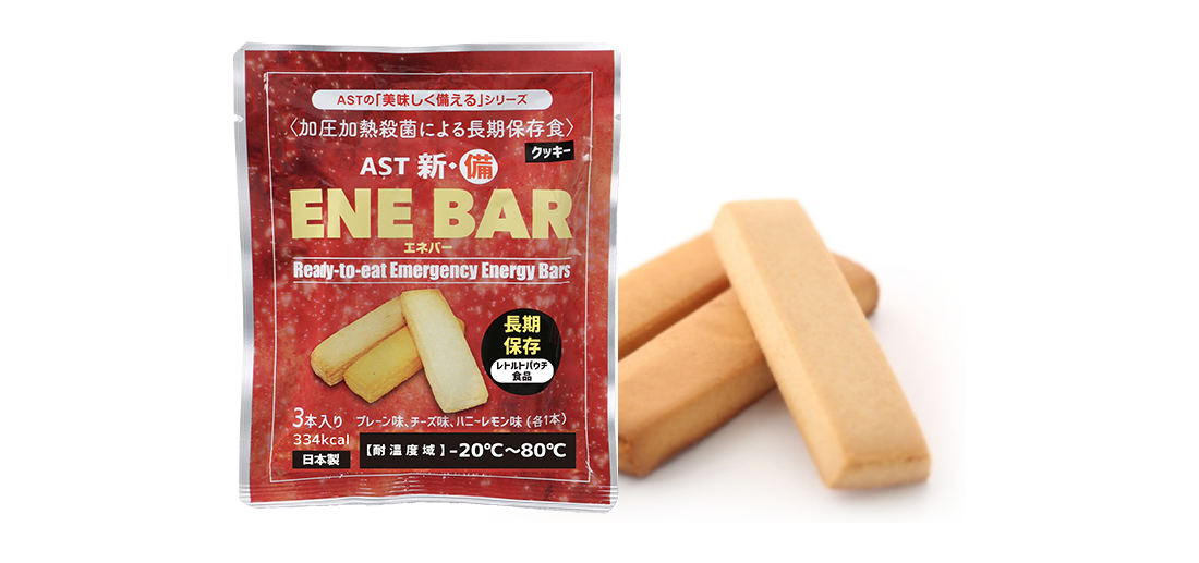 「耐熱温度域-20℃~80℃」加圧加熱殺菌による長期保存食クッキー